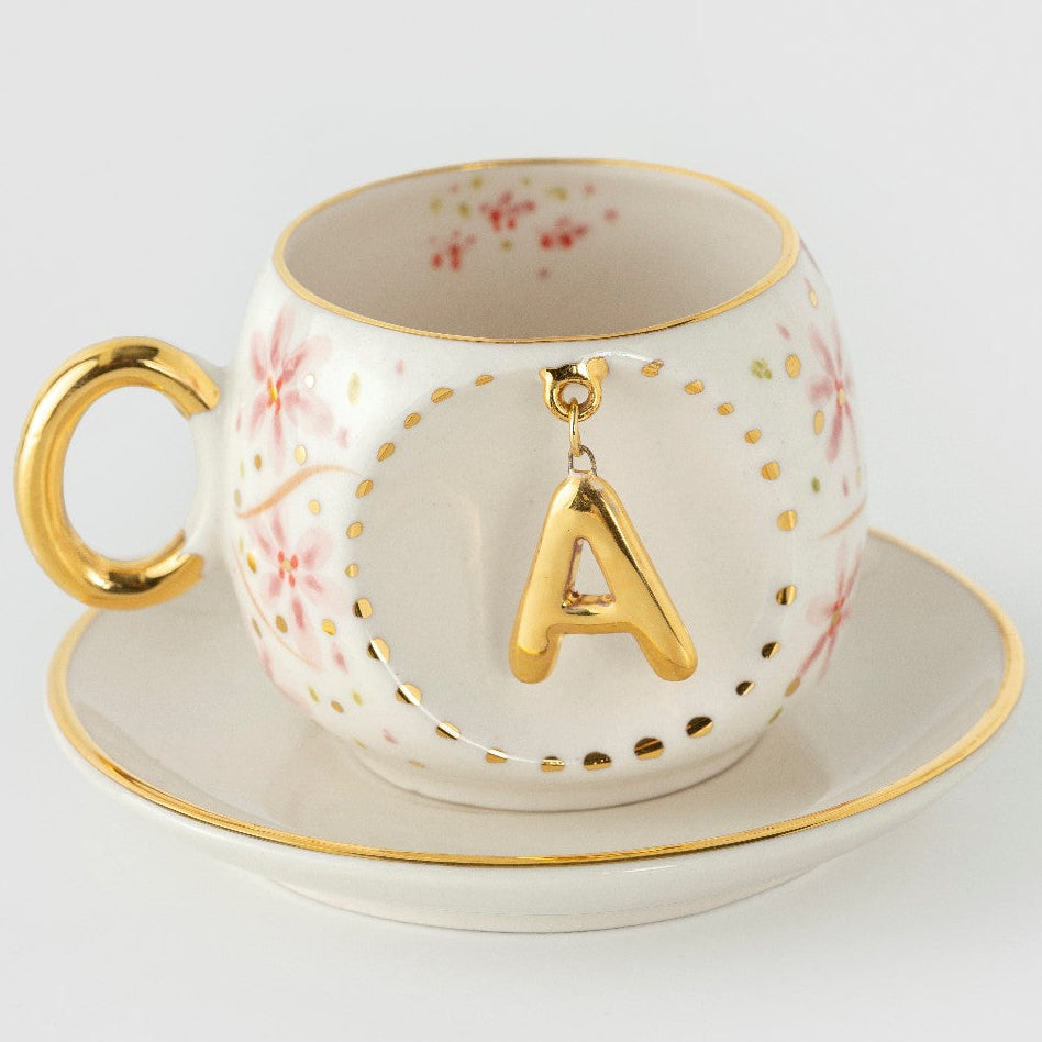 - El yapımı harfli porselen çay fincanı