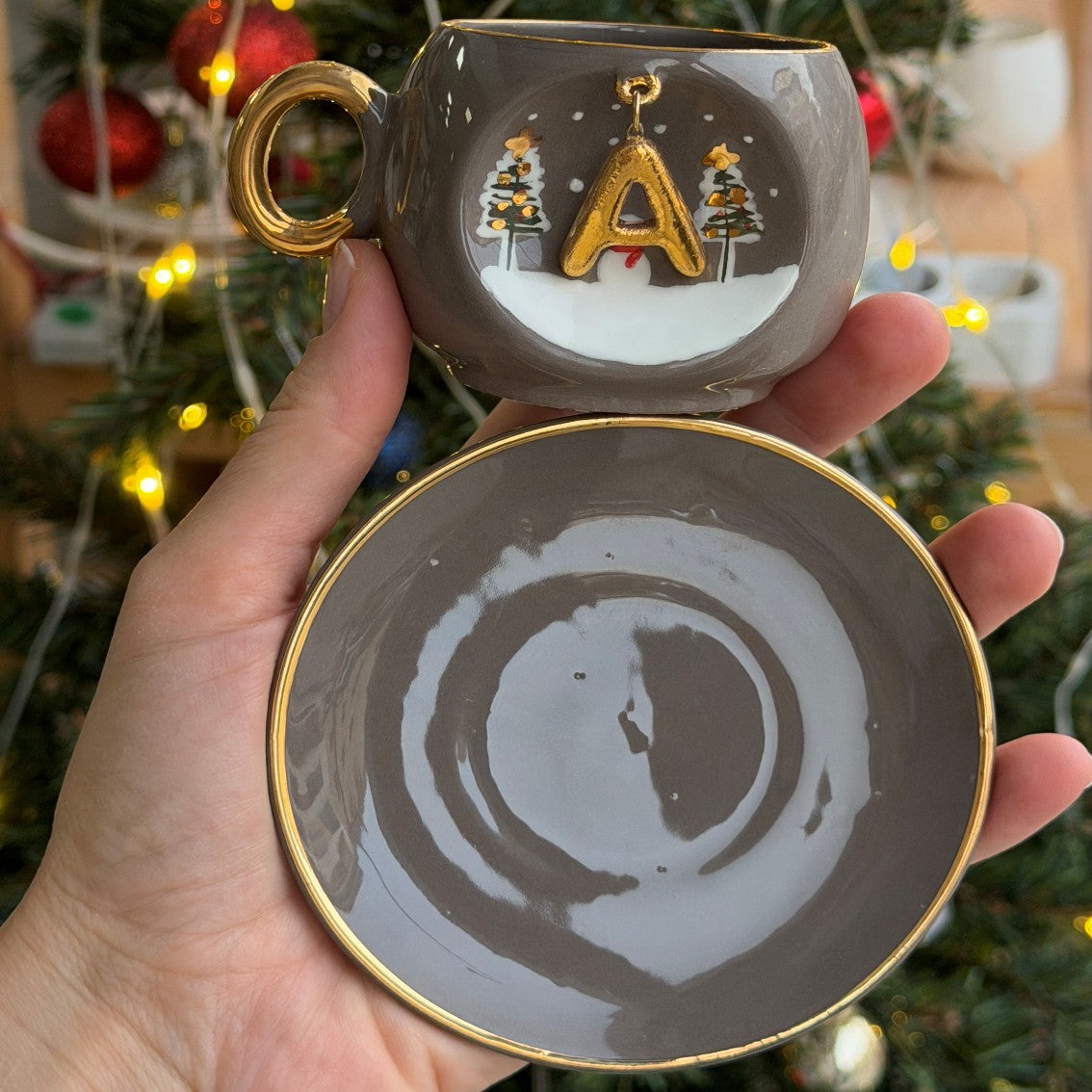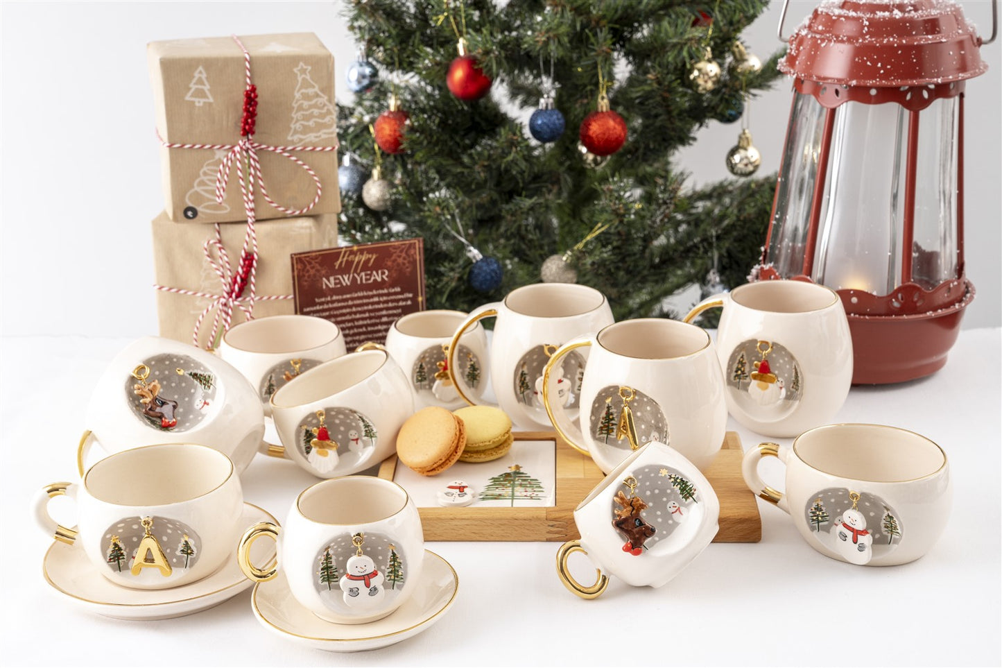 - El yapımı çay ve kahve fincanları, özellikle kış temalı sunum seti veya harfli fincanlar