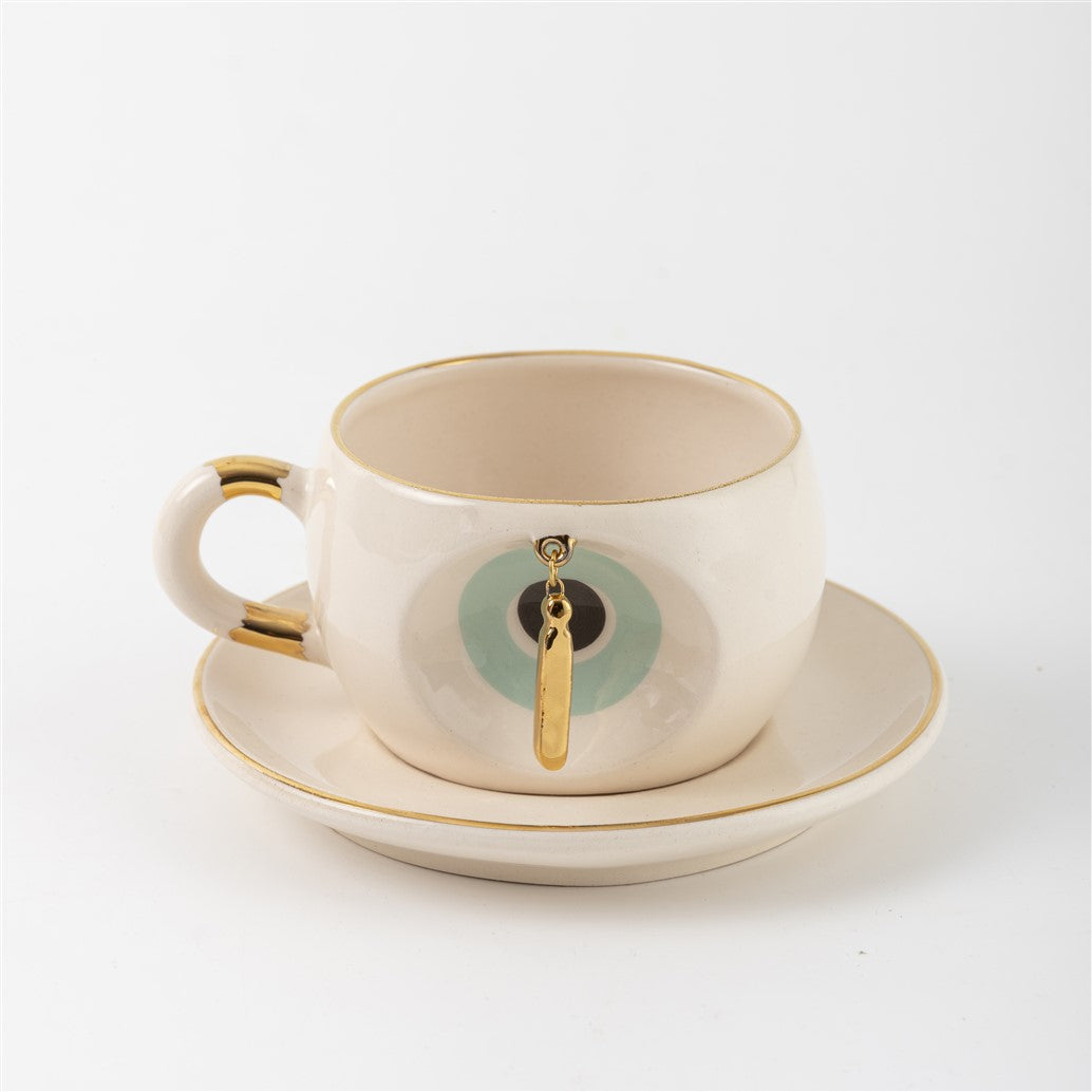 Harfli Yeşil Çay Fincanı Nazar Boncuklu