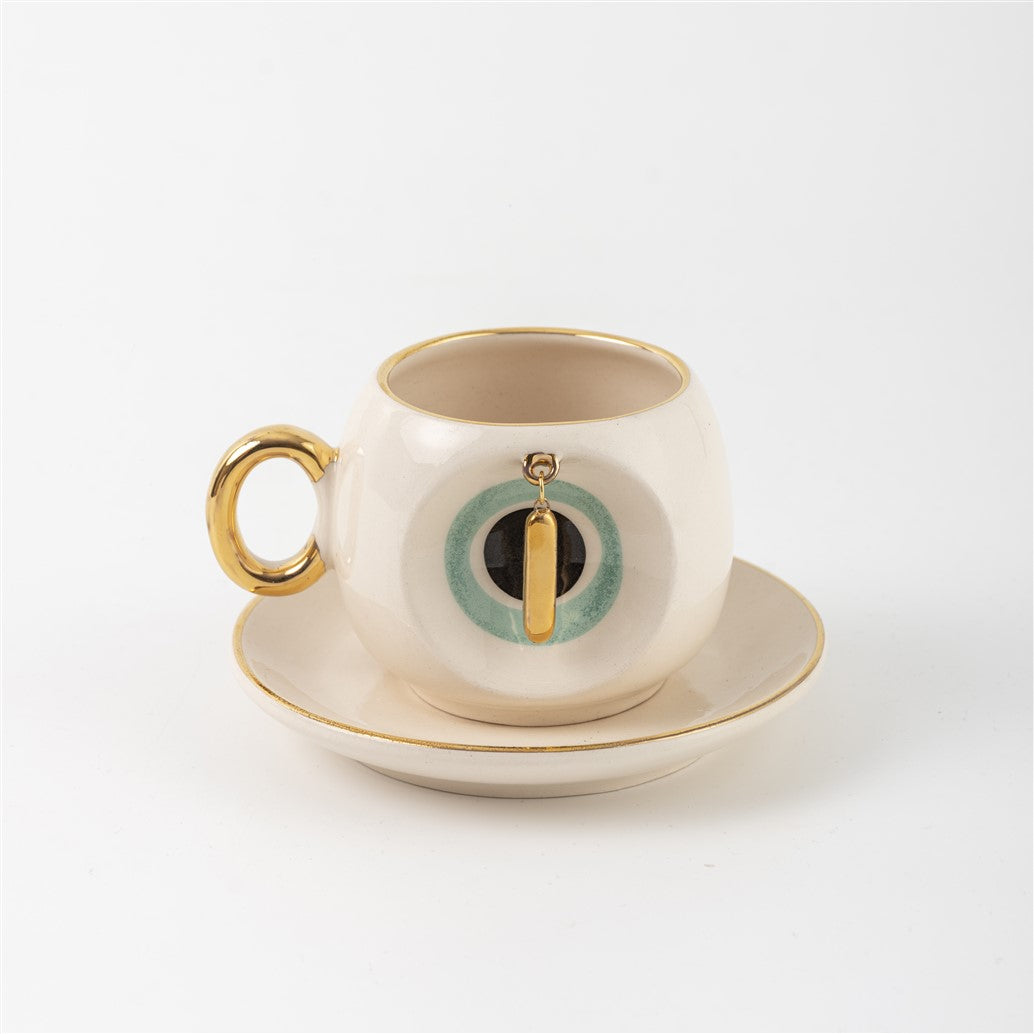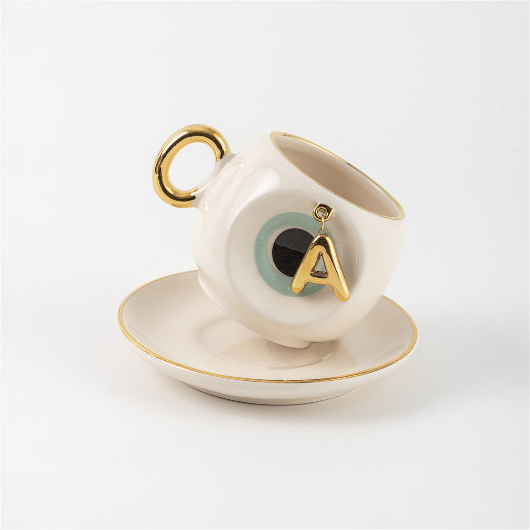 Harfli Yeşil Nazar Boncuklu Kahve Fincanı