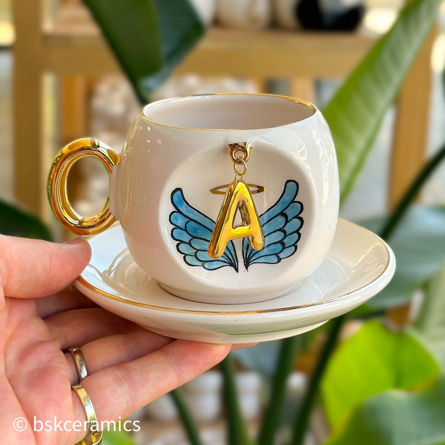 Melek kanadı kahve fincanı kişiye özel harf seçeneği ile sevdiklerinize en güzel özel gün hediyesi olacak ya da size bol köpüklü kahvelerinizde eşlik edecek.