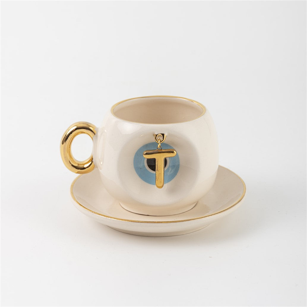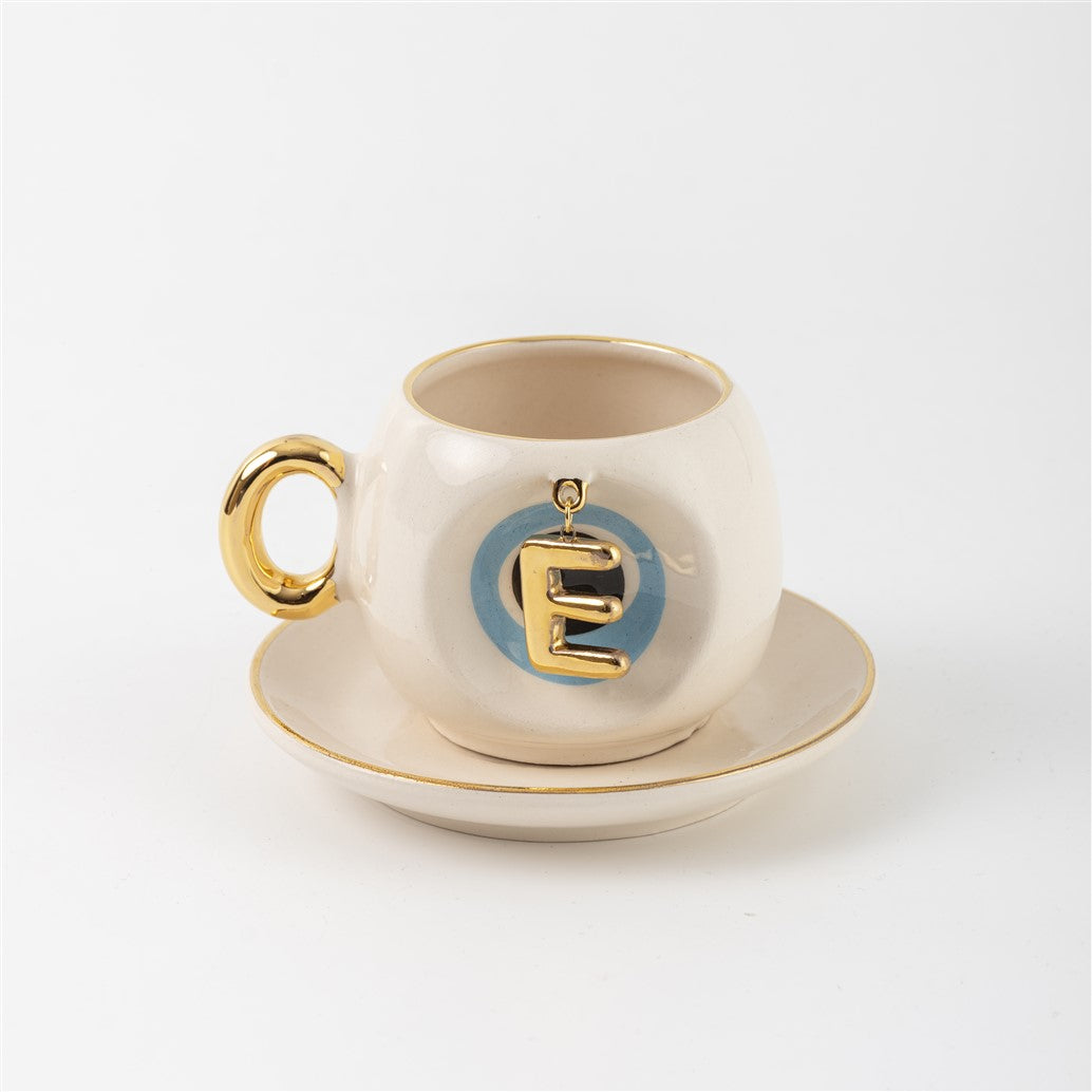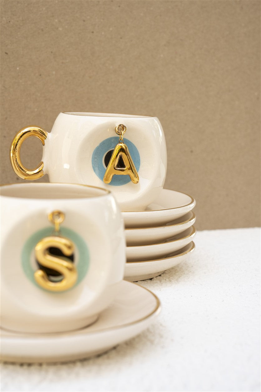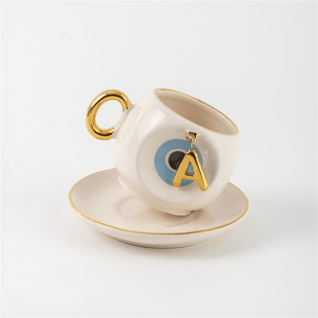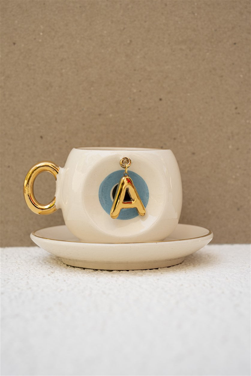 Harfli Mavi Nazar Boncuklu Kahve Fincanı