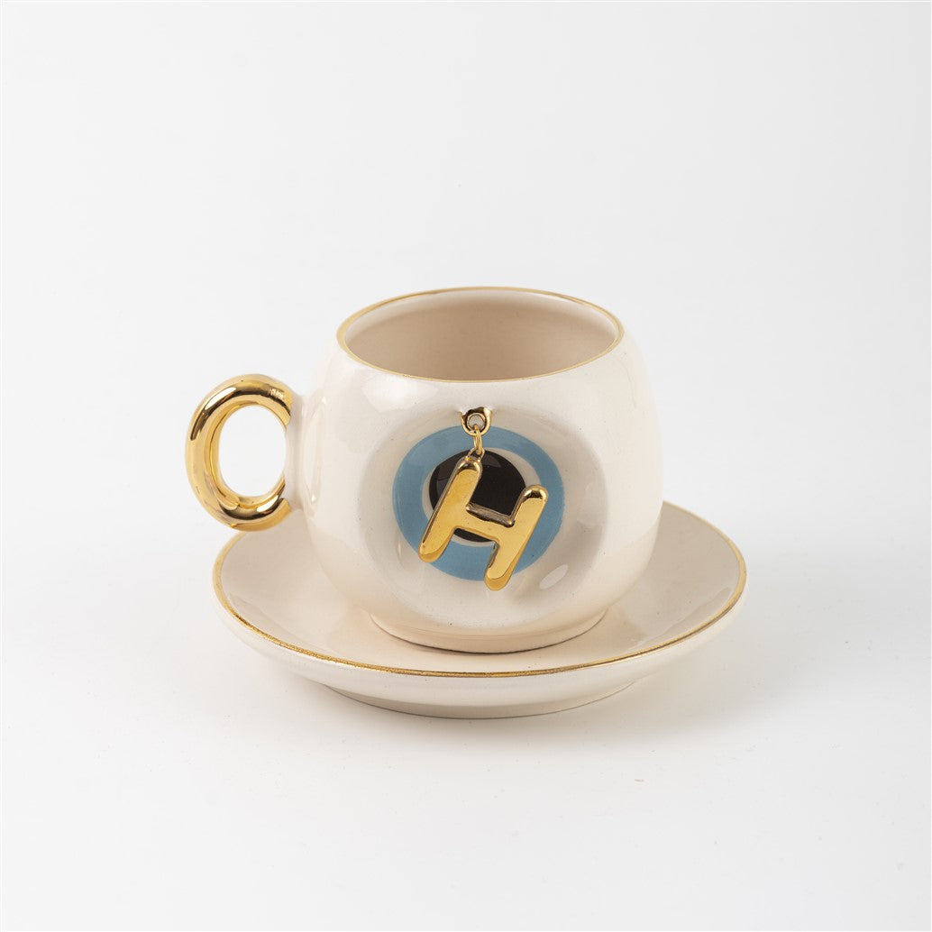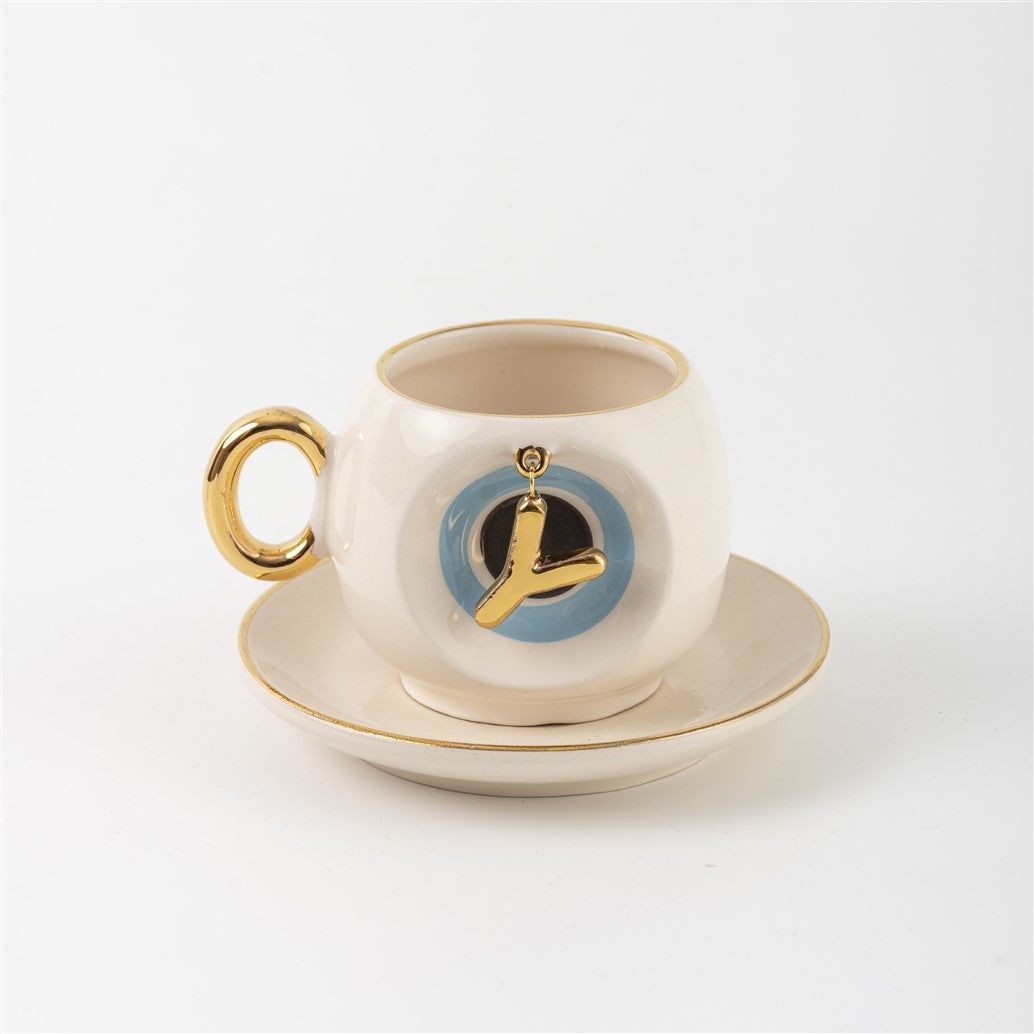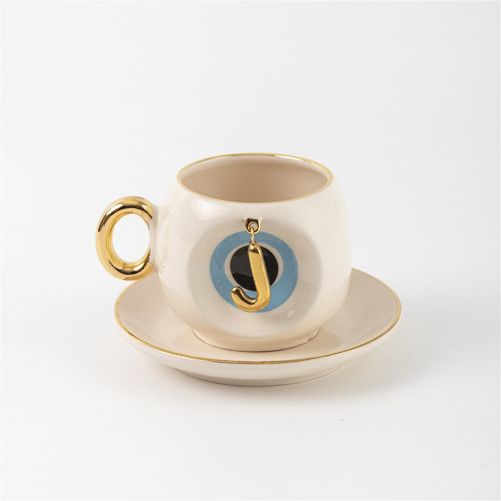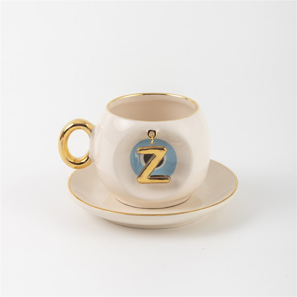 Harfli Mavi Nazar Boncuklu Kahve Fincanı