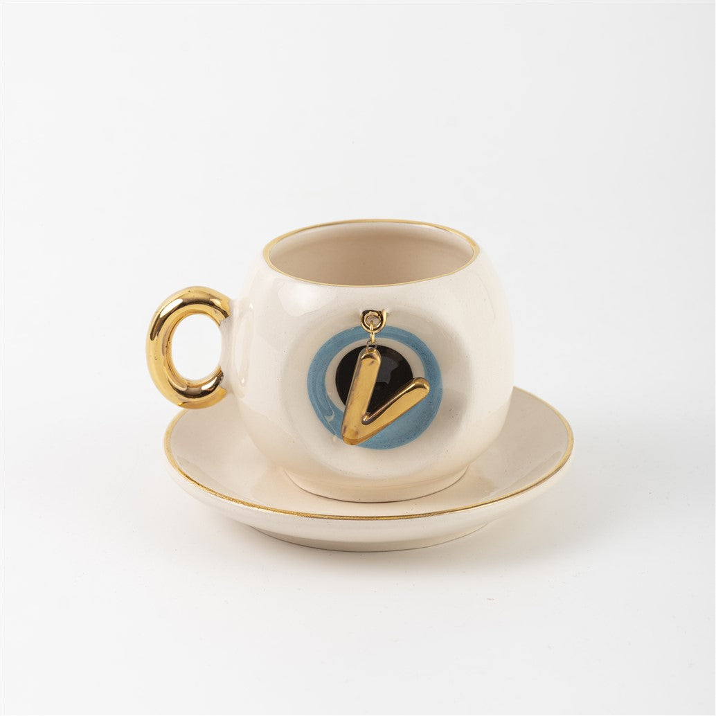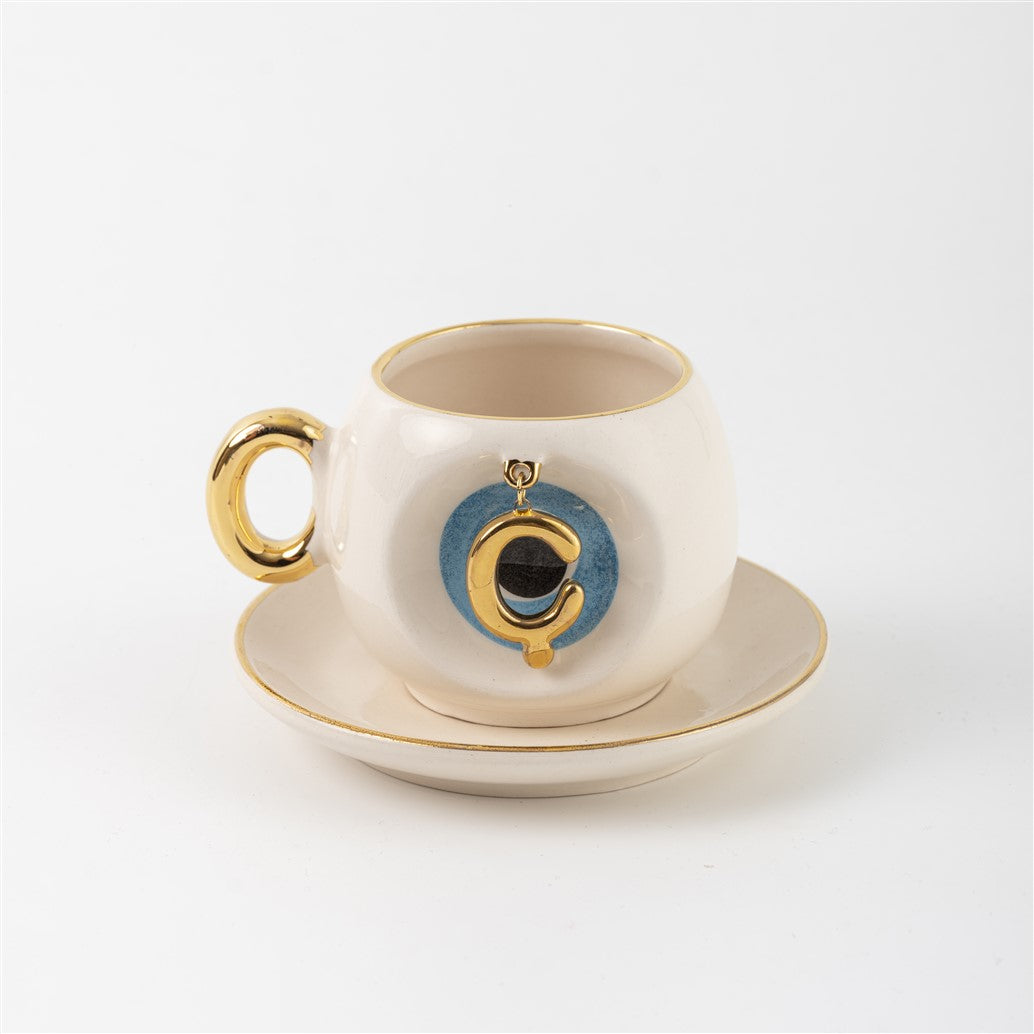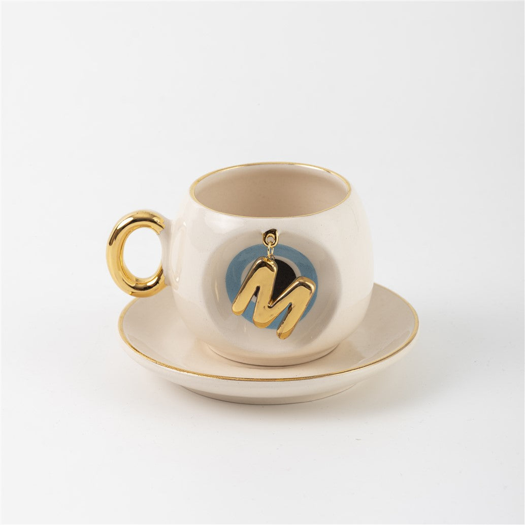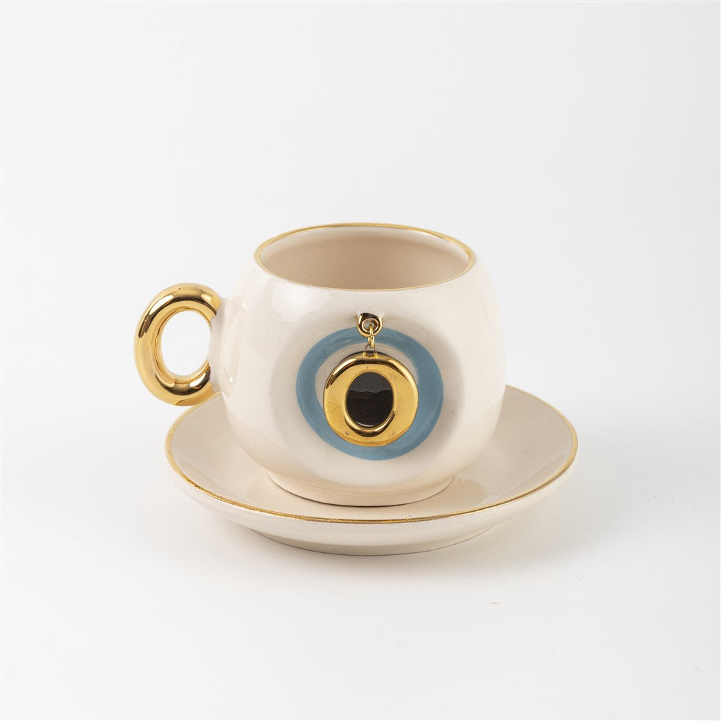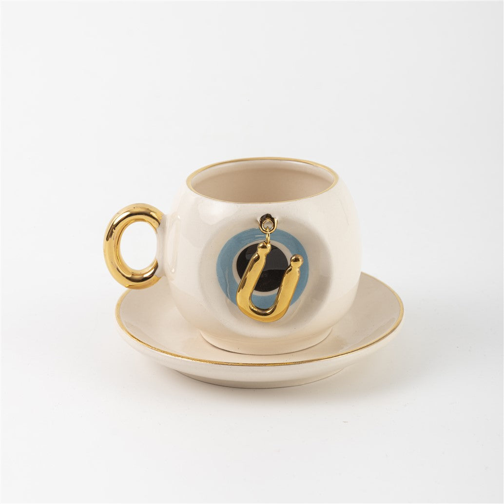Harfli Mavi Nazar Boncuklu Kahve Fincanı