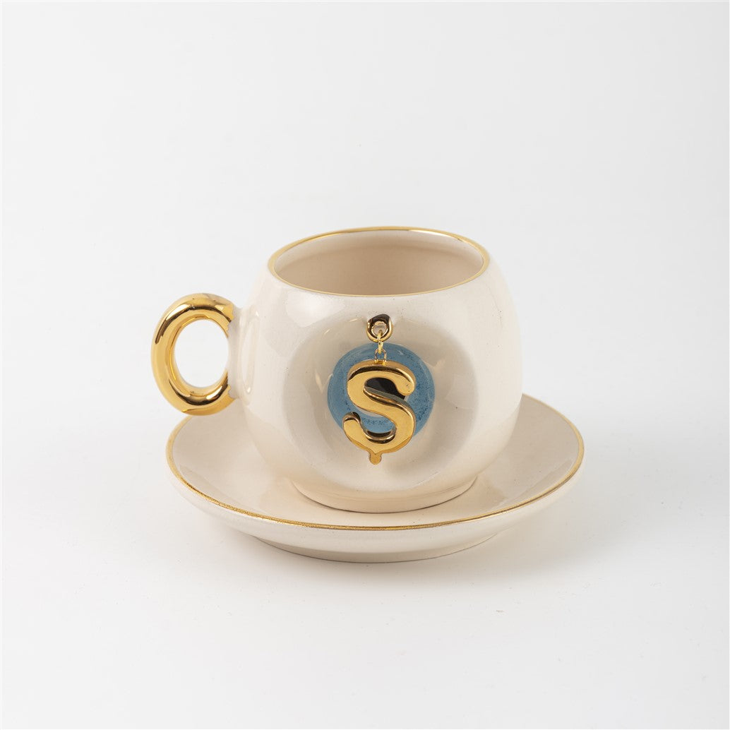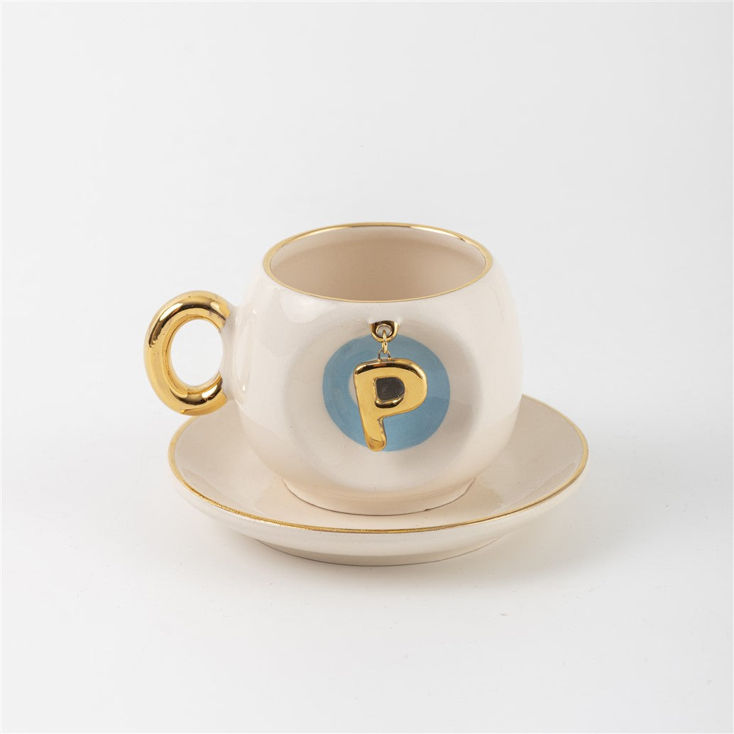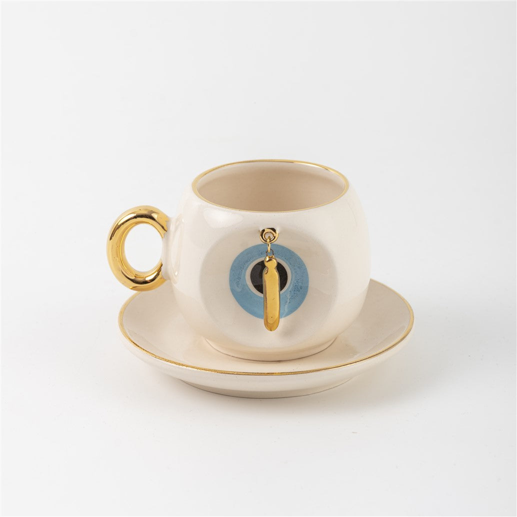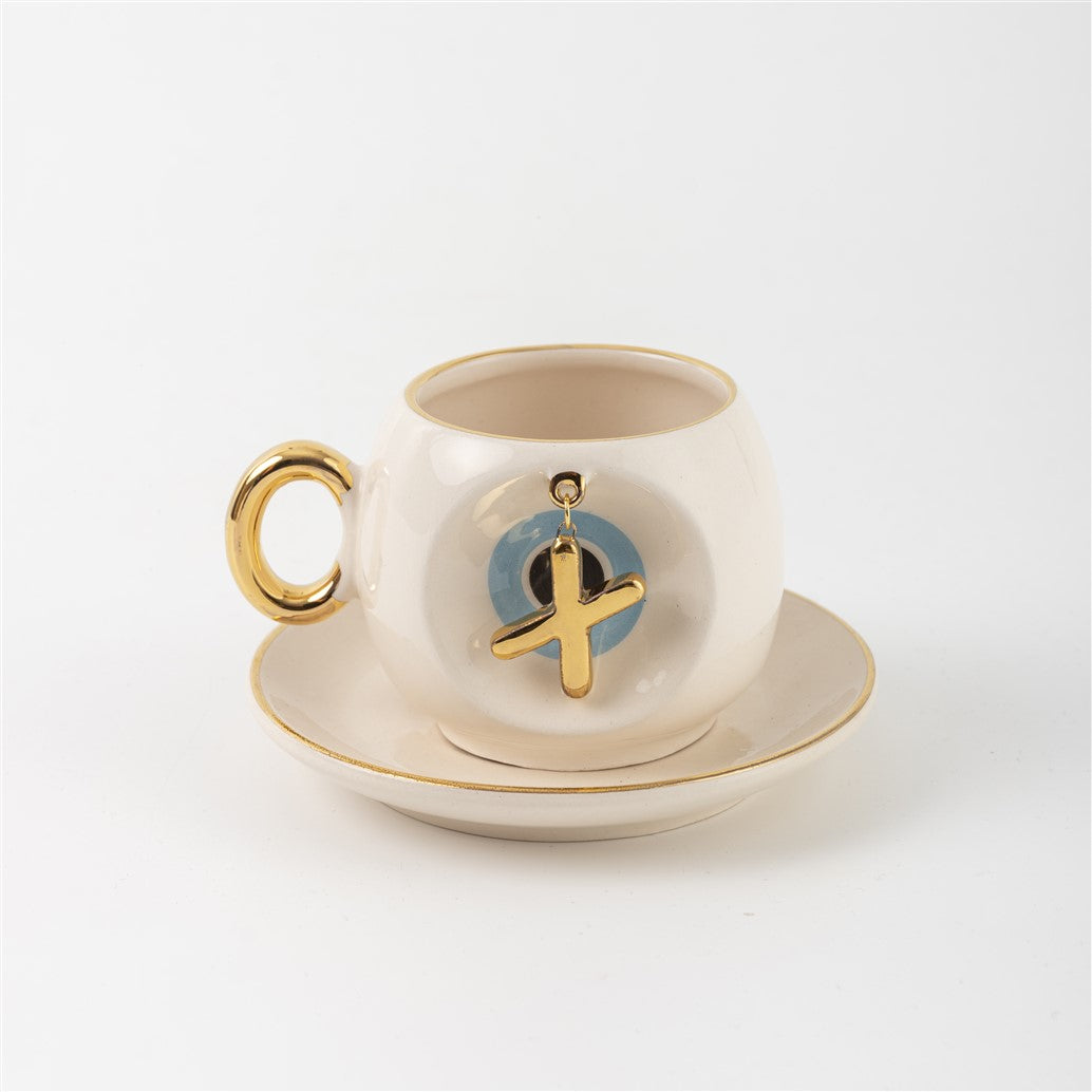 Harfli Mavi Nazar Boncuklu Kahve Fincanı