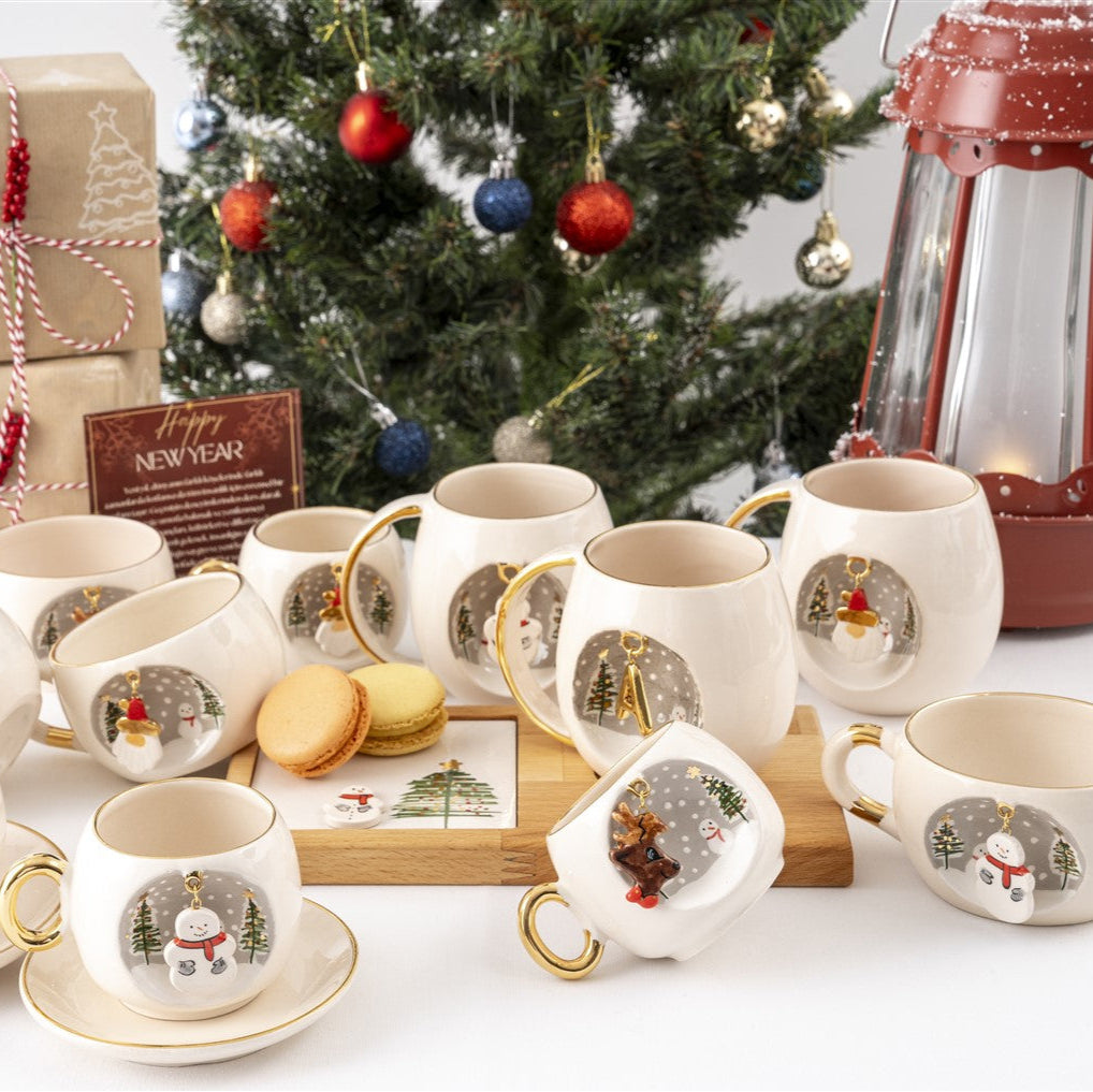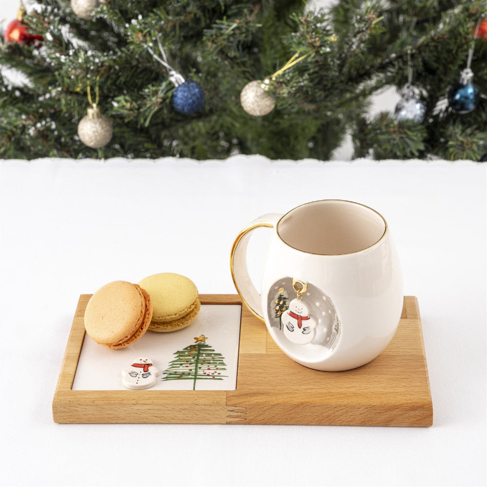 Bu ürünün üzerindeki bütün desenler fırça çizimidir ve sabit halkaya takılı seramik üzeri kardan adam figürü içerir. Halka, üretim aşamasında kupa ile beraber üretildiği için çıkma söz konusu değildir.