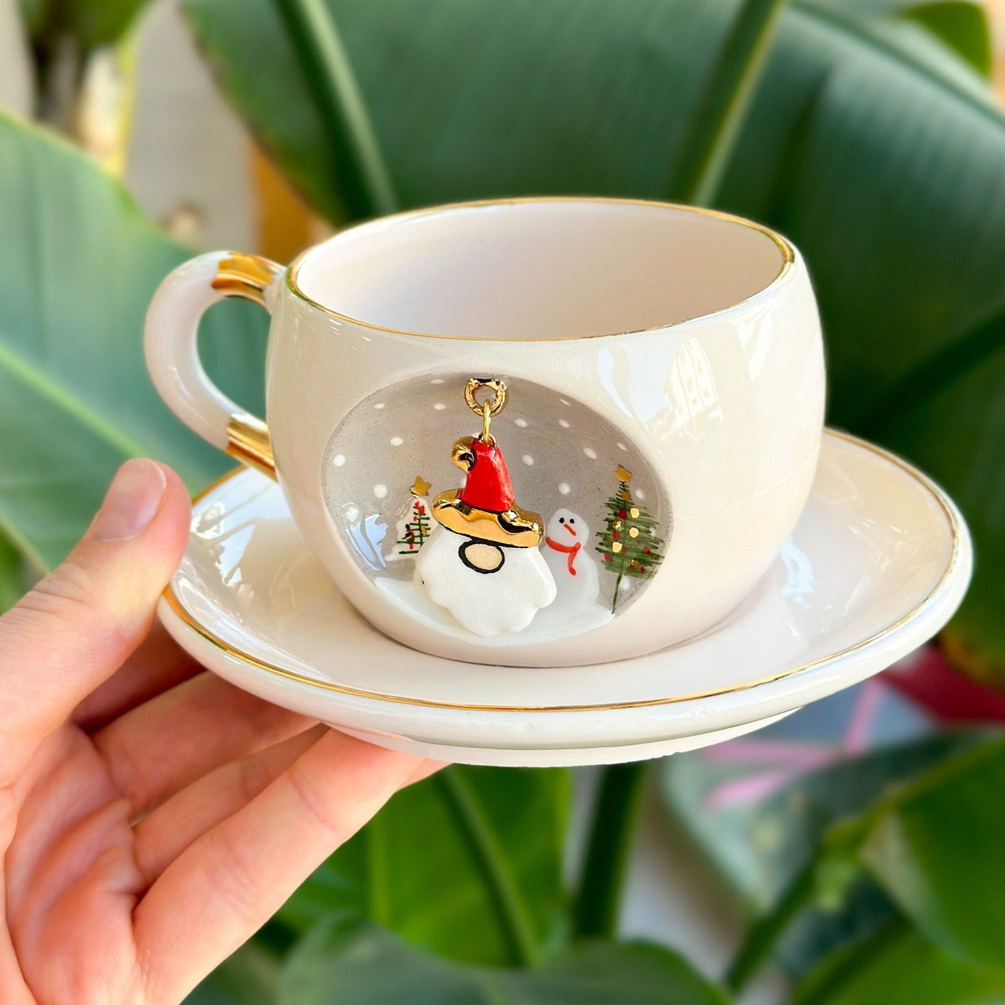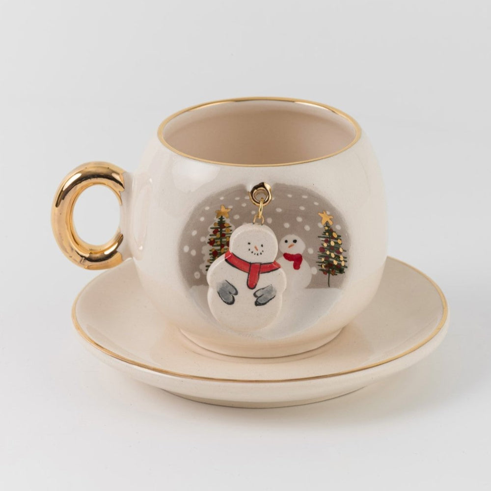 Yeni Yıl Temalı Kardan Adam Çay Fincanı