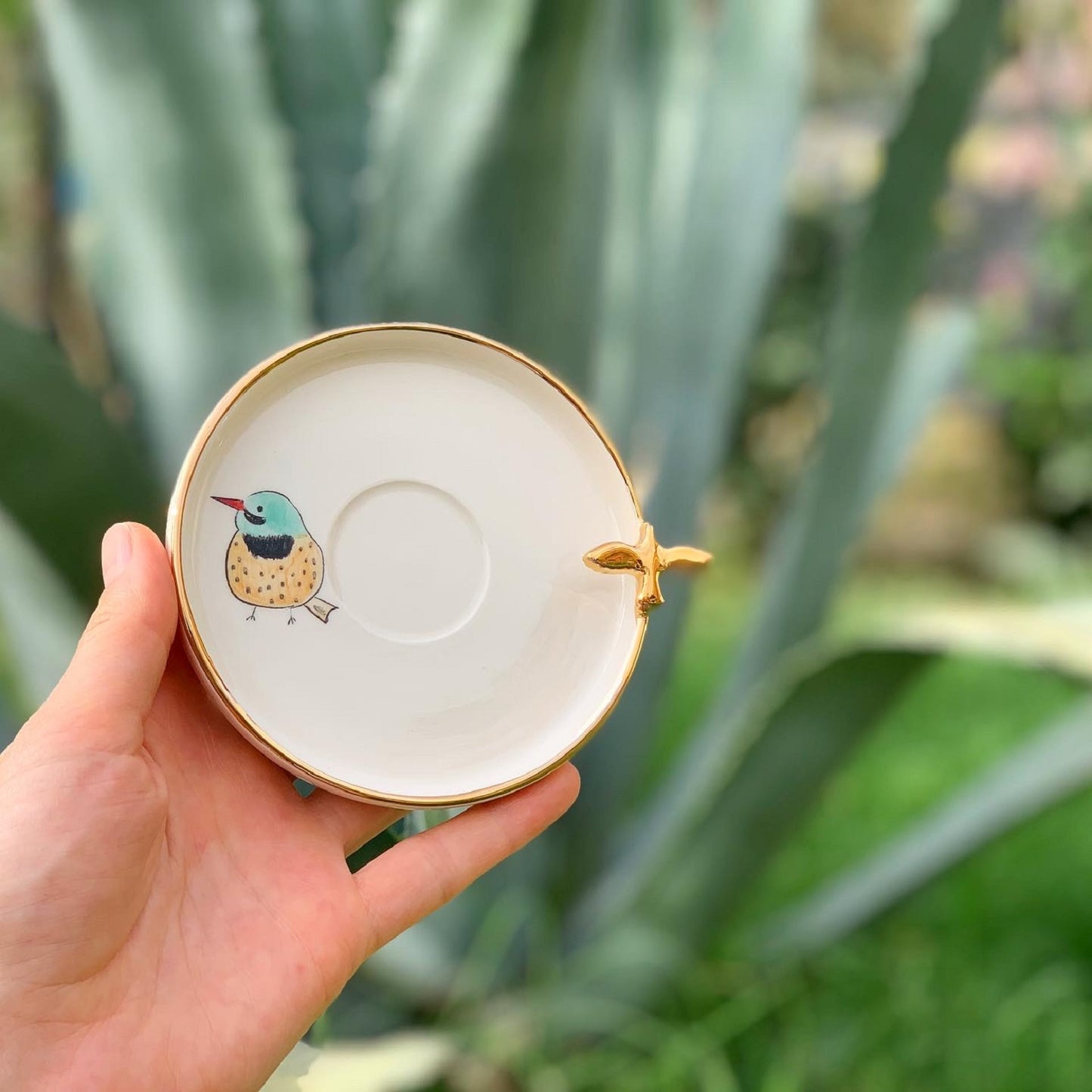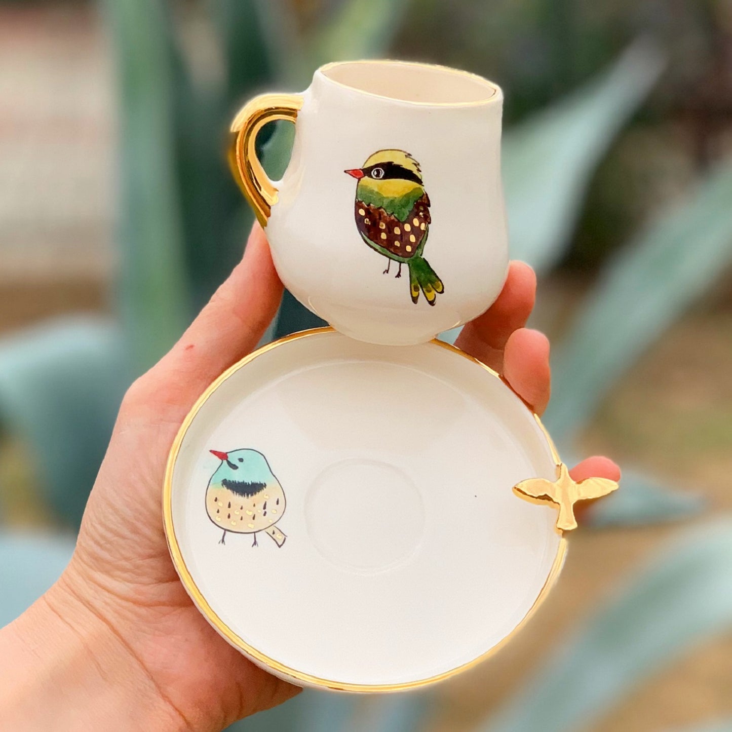 Altın Kuş Desenli Kahve Fincanı Yeşil