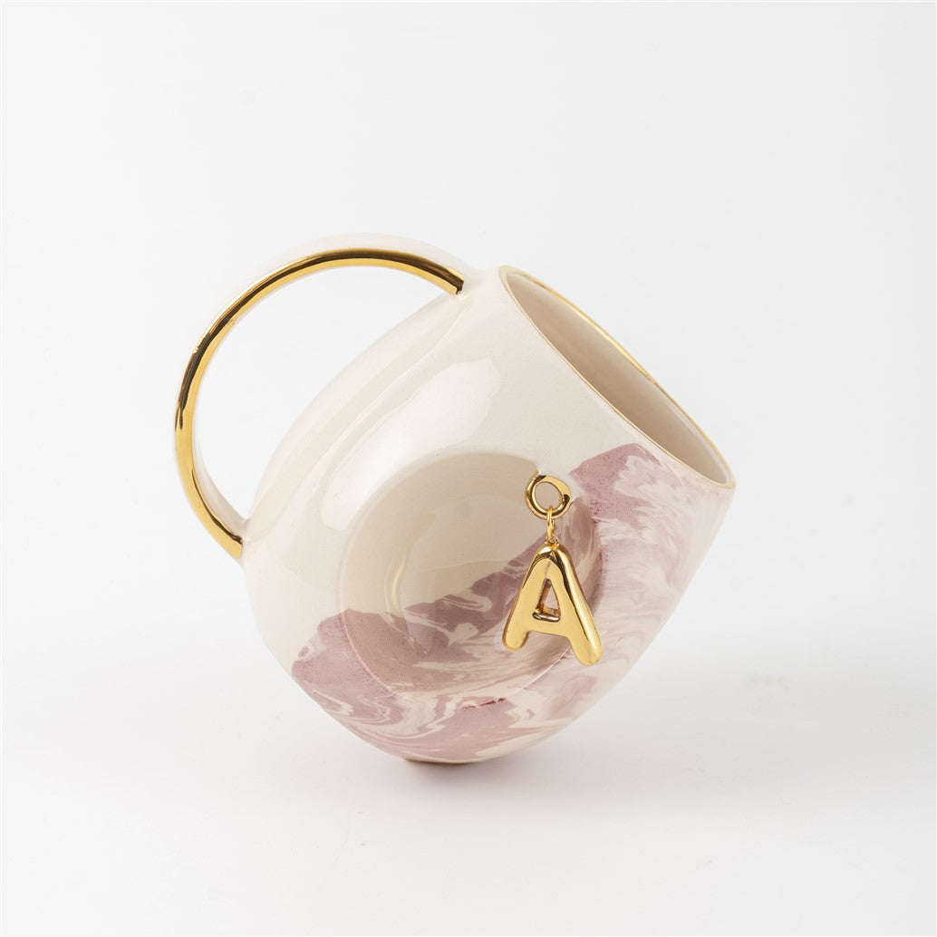 Bu ürün kupa üzerinde Fale Deseni ve sabit halkaya takılı seramik üzeri Altın Kaplama Harf içerir. Halka, üretim aşamasında kupa ile beraber üretildiği için çıkma söz konusu değildir.