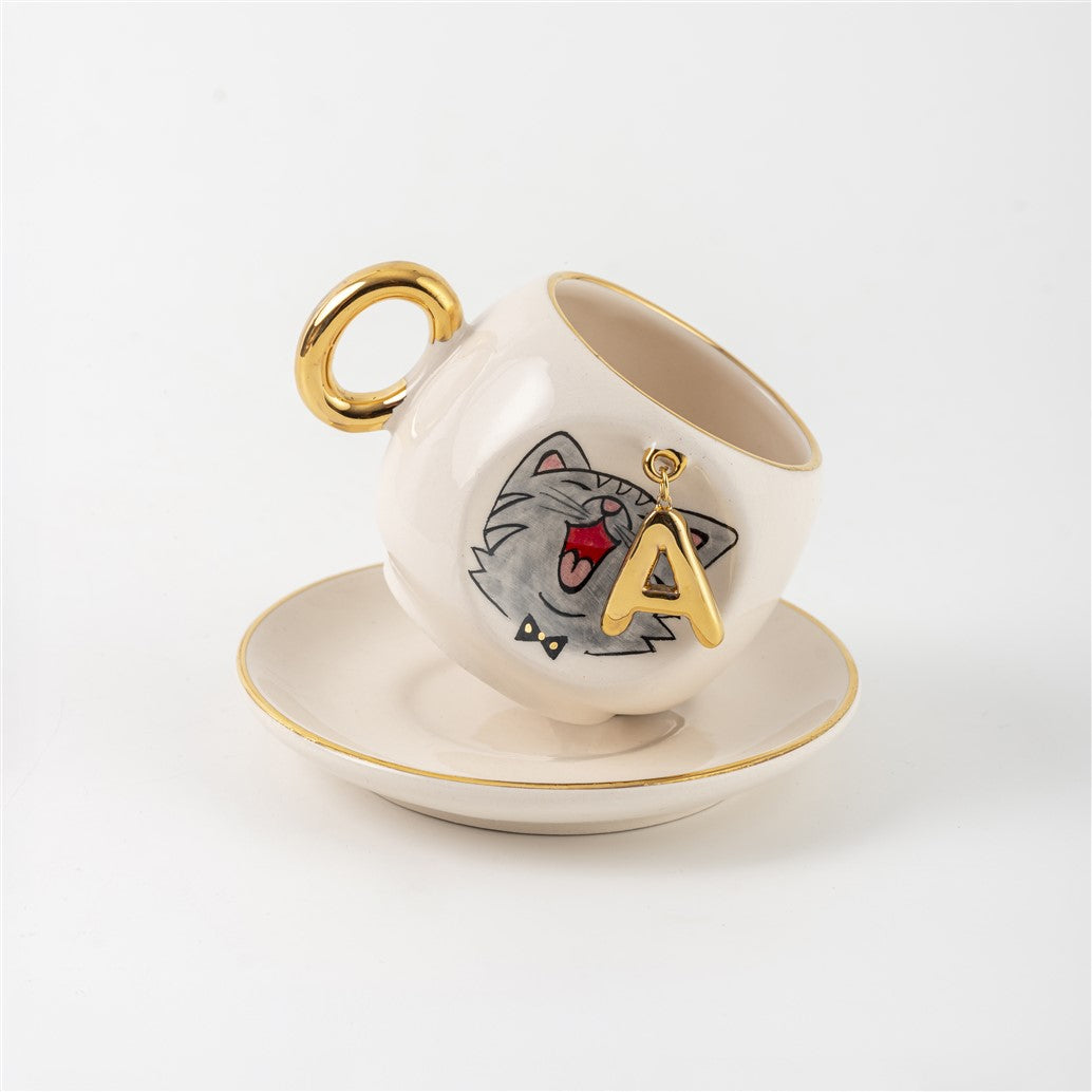 Harfli Kedili Kahve Fincanı