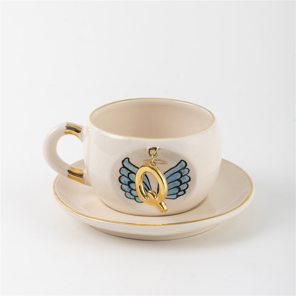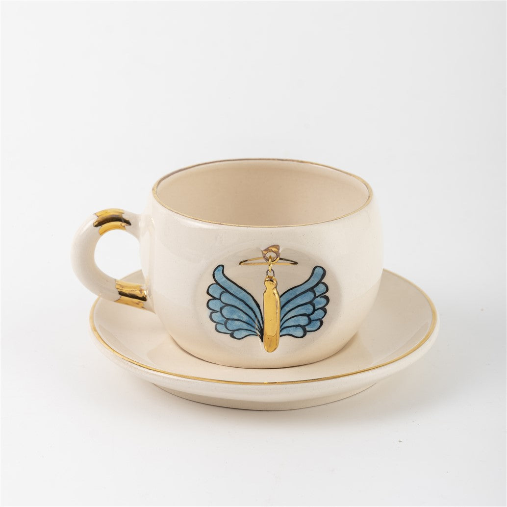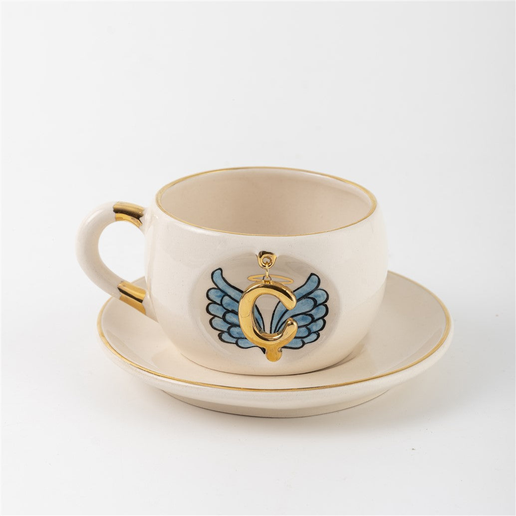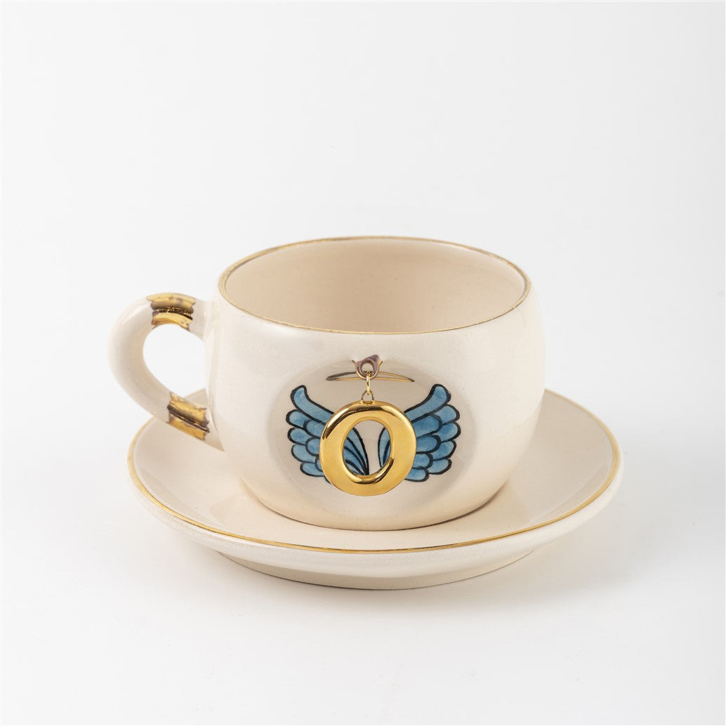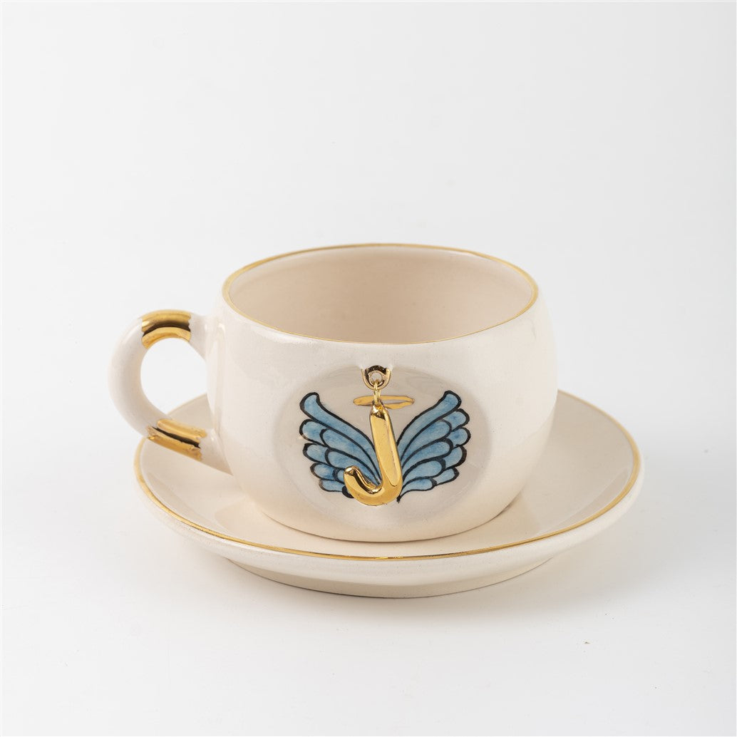 Harfli Mavi Melek Kanatlı Çay Fincanı