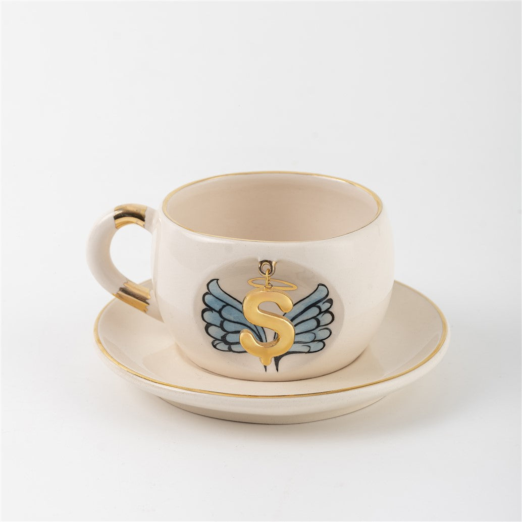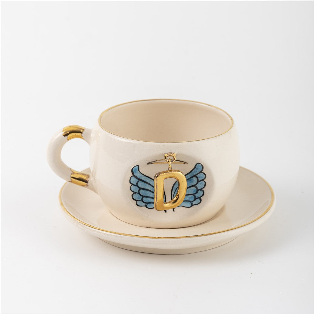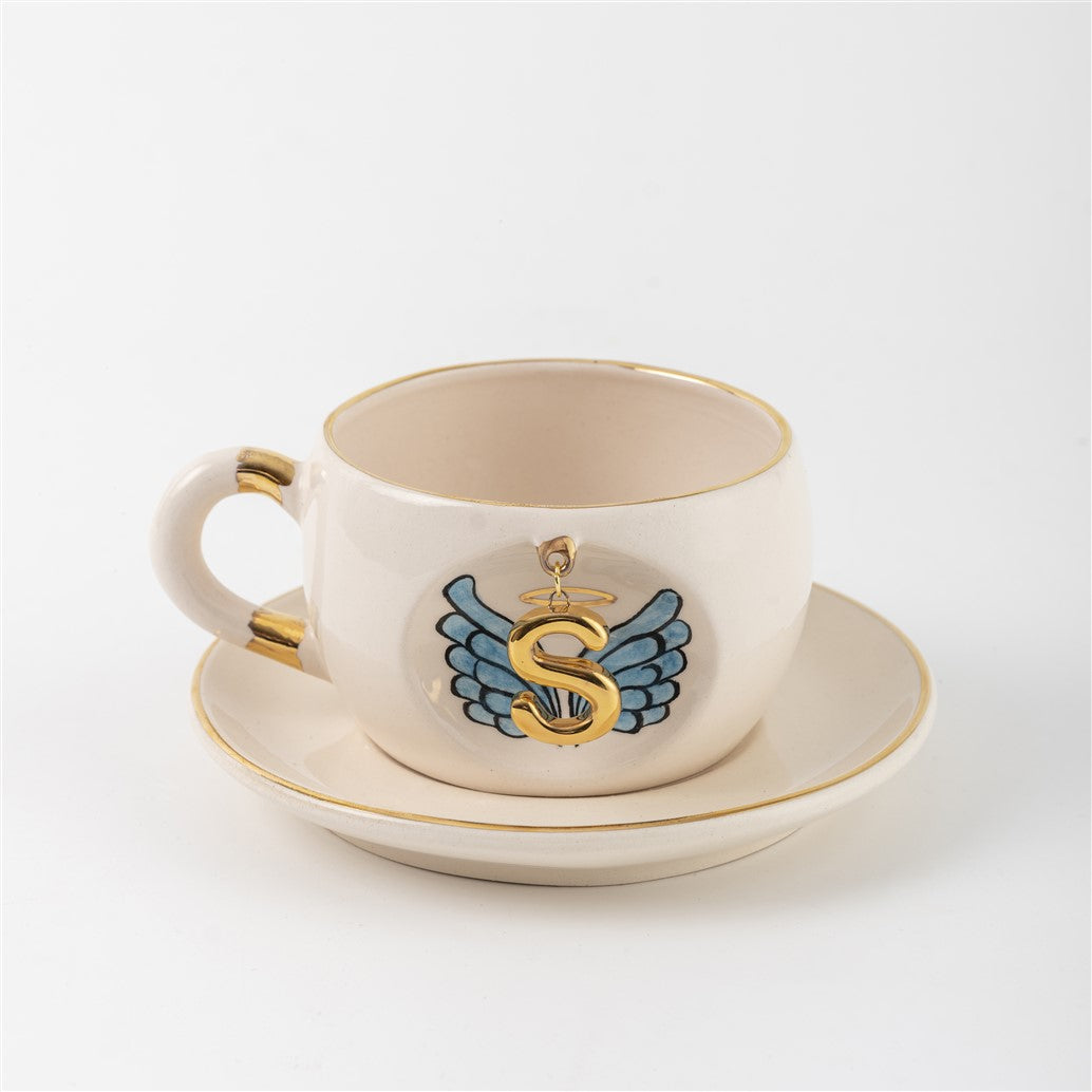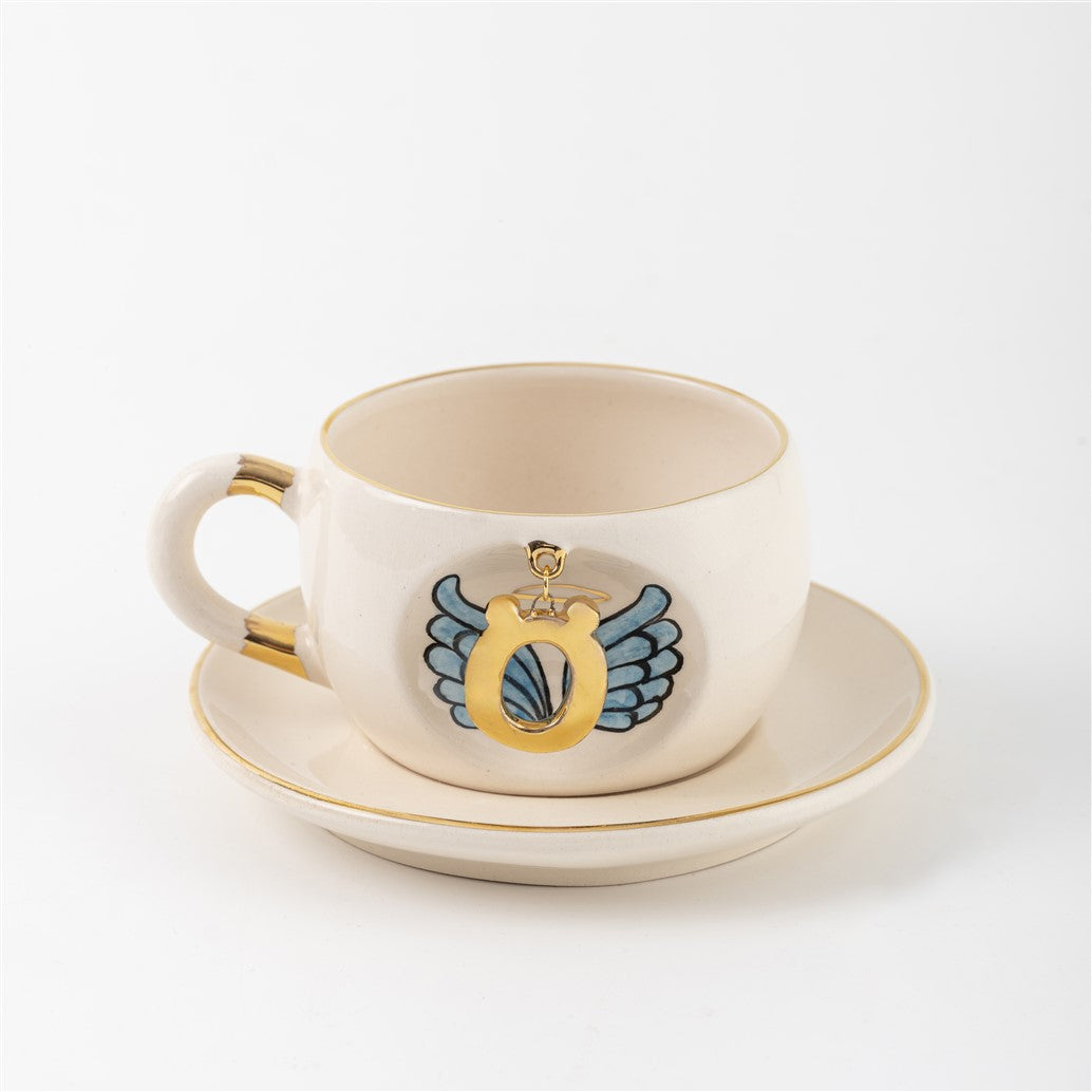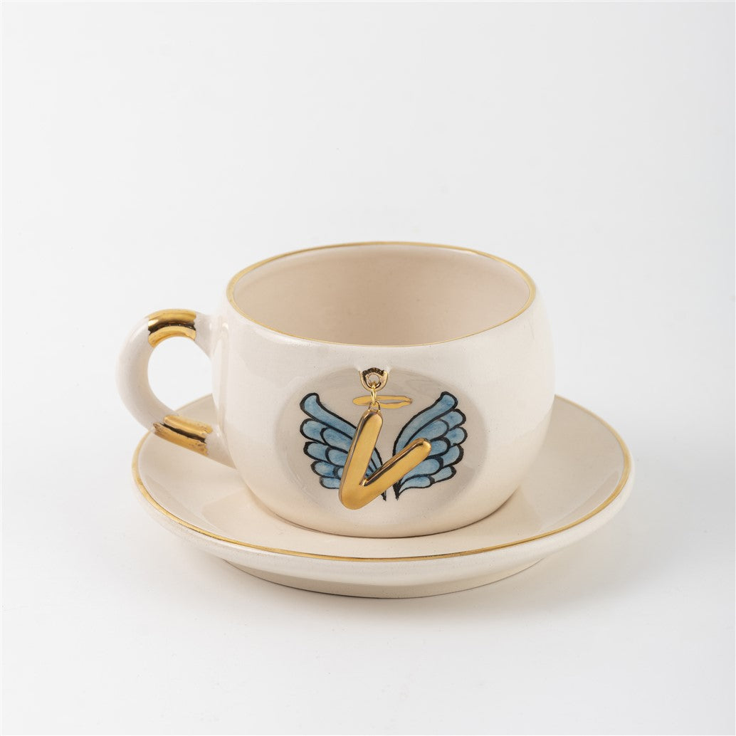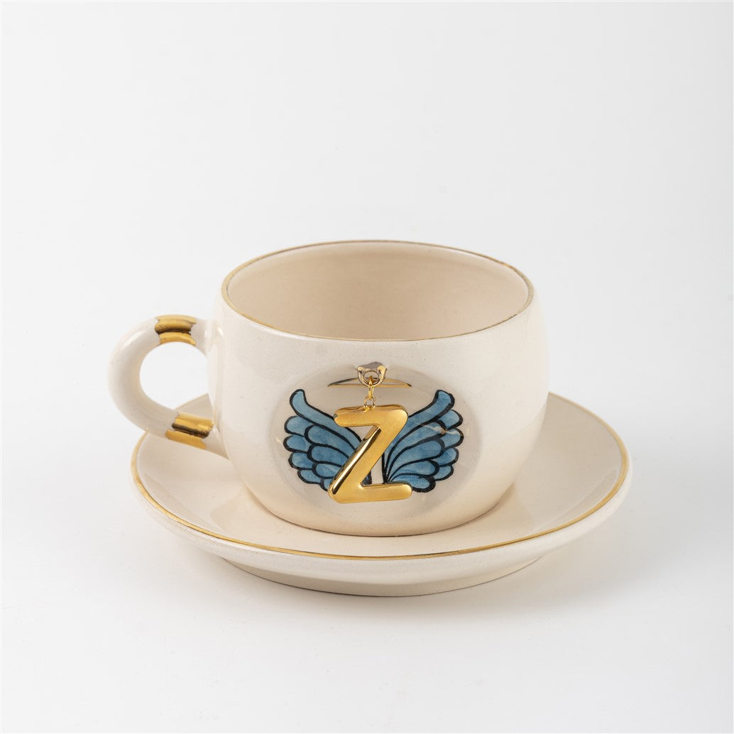 Harfli Mavi Melek Kanatlı Çay Fincanı