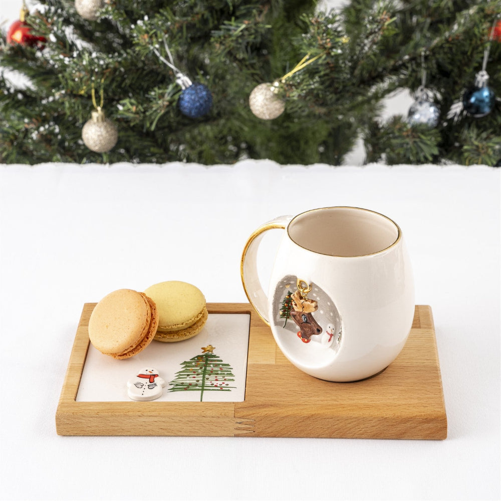 Bu ürünün üzerindeki bütün desenler fırça çizimidir ve sabit halkaya takılı seramik üzeri geyik figürü içerir. Halka, üretim aşamasında kupa ile beraber üretildiği için çıkma söz konusu değildir.