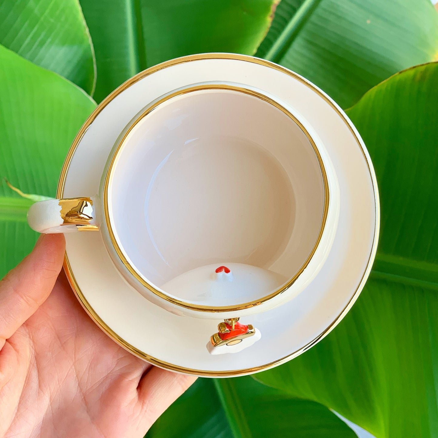 Fincanımız, 24 ayar gerçek altın kaplama halkası, ağız kısmı ve tabak kenarlarıyla şıklık ve zarafeti birleştiriyor. Kışın neşesini her yudumda hissettiren bu tasarım, yılbaşı çay fincanı olarak da mükemmel bir alternatif sunuyor.