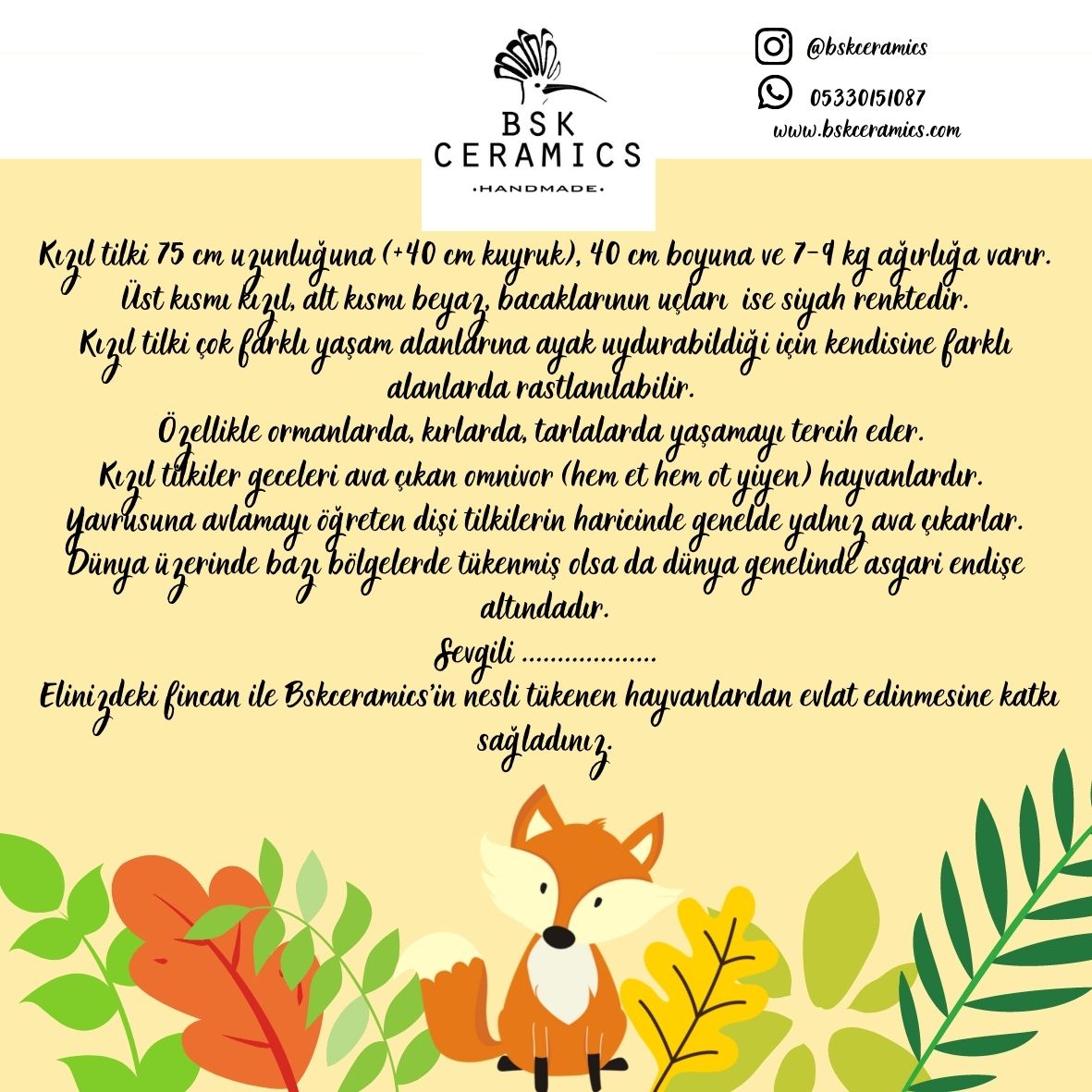 Kızıl Tilki Kupa, doğanın en zarif ve renkli canlılarından ilham alınarak tasarlandı. El işçiliğiyle şekillendirilen porselen gövdesi, su bazlı ve alerjen içermeyen boyalarla boyandı ve her detay özenle elde işlendi.