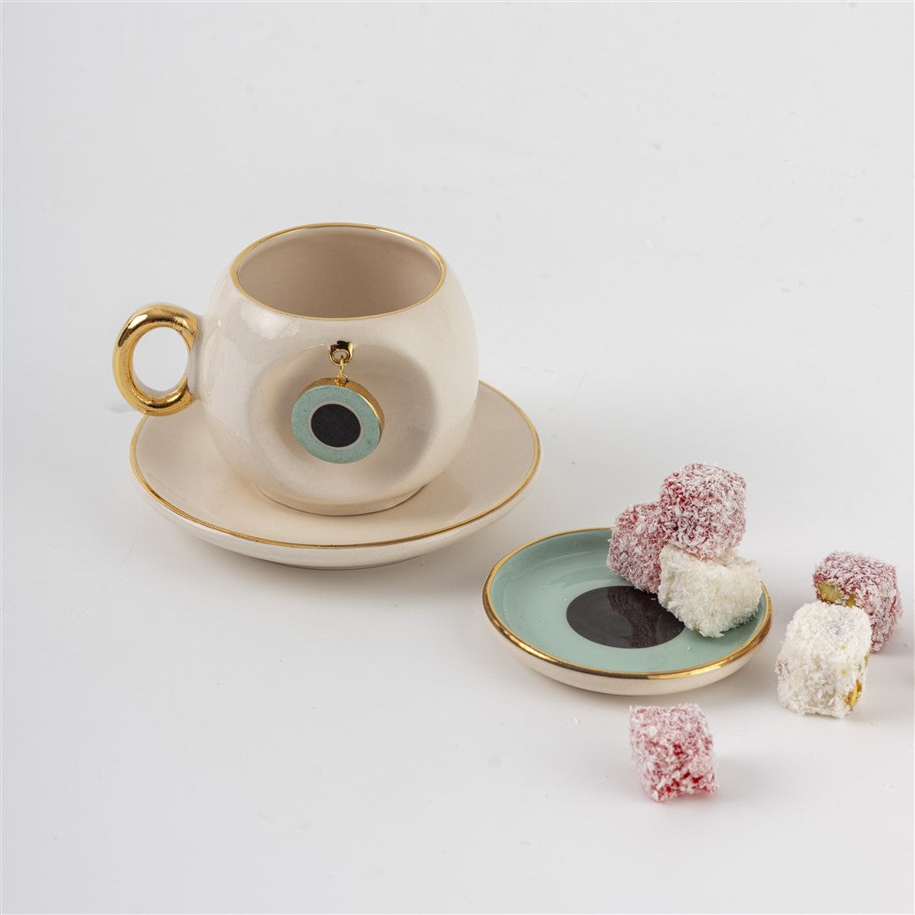 Kahve Yanı Porselen Lokumluk Nazar Yeşil